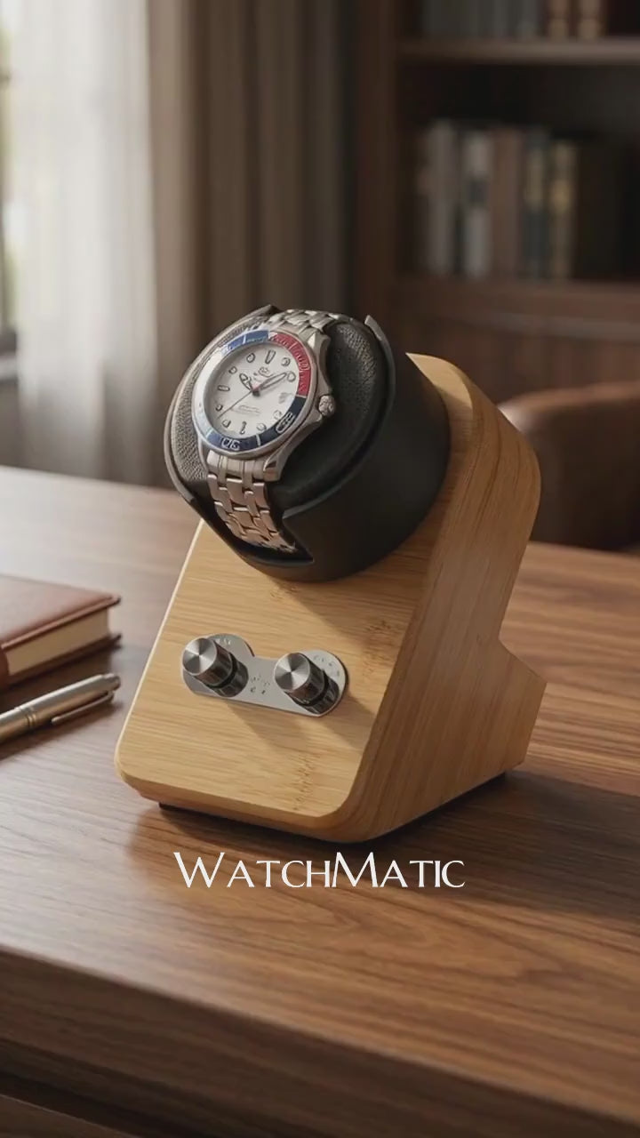 Crafted from solid wood with a satin finish, this angled single-slot winder features ultra-quiet Japanese Morlboro motors and manual TPD control knobs for full customization. Choose from three classic colors — warm brown, deep black, or modern yellow — each matched with a leather-textured cushion and secure cradle. Plug-in powered.